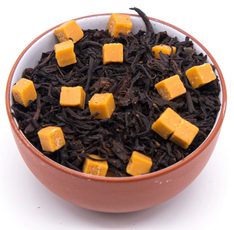 Индийский черный чай с кусочками карамели в составе и ненавязчивой и согревающей ноткой английской карамели во вкусе. Имеет сладкий, тягучий и глубокий вкус.